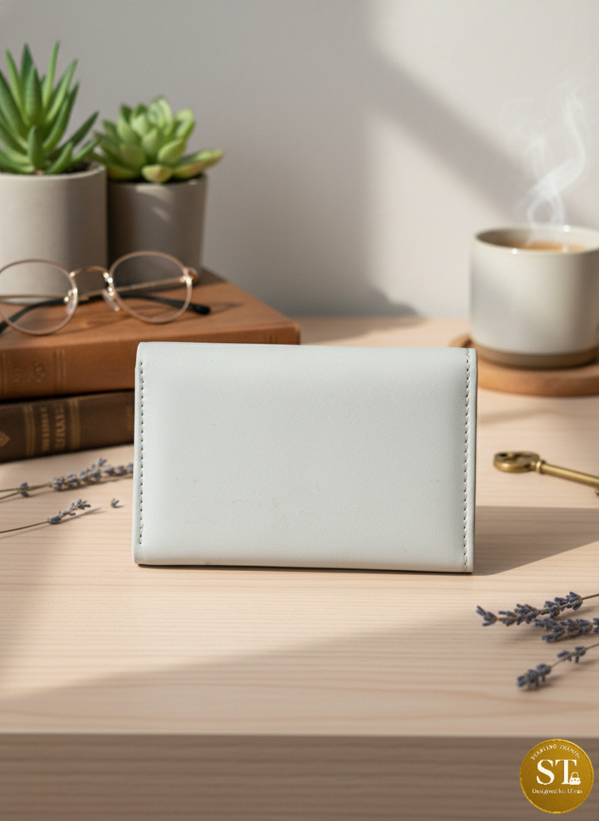 This mini wallet features neat stitching with a smooth finish and a playful citrus-inspired print. The soft pastel base is highlighted with orange motifs and leaf accents, giving it a fresh, cheerful look perfect for daily use.