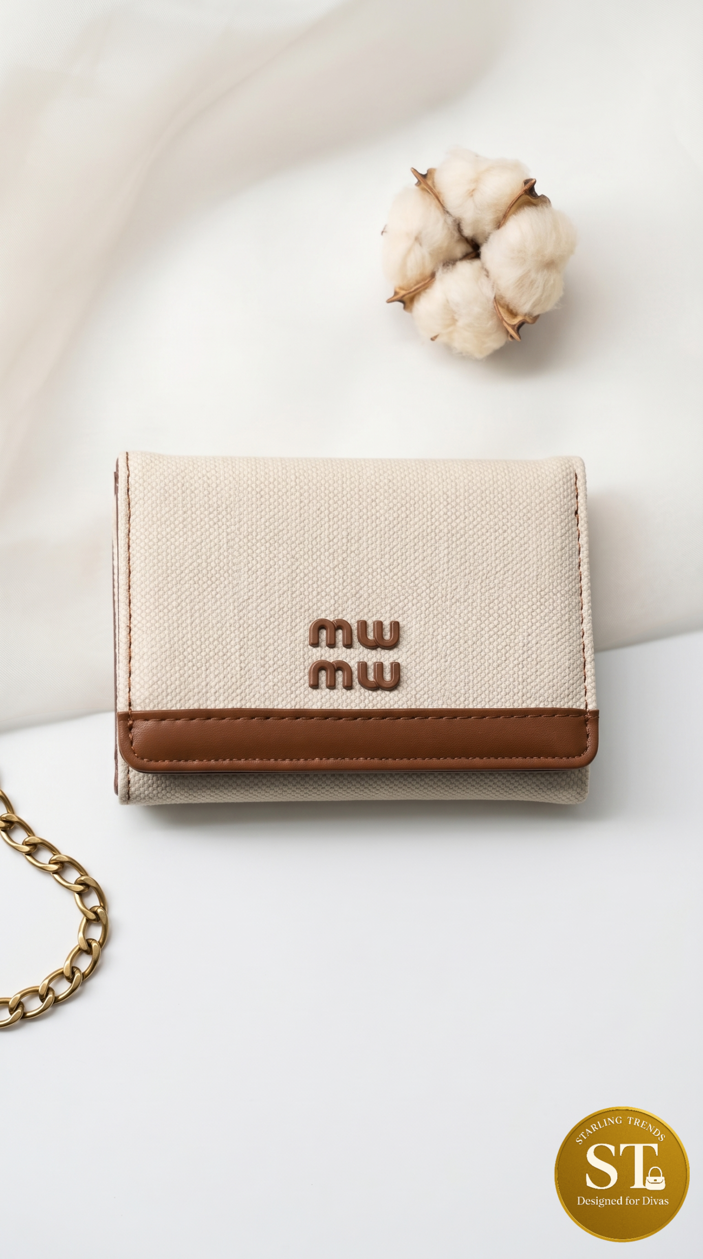 A playful triple-fold wallet Compact yet functional, its smooth finish and soft structure make it ideal for everyday use. The contrast of nature-inspired props against satin black elevates its minimal, Miniso-style aesthetic.