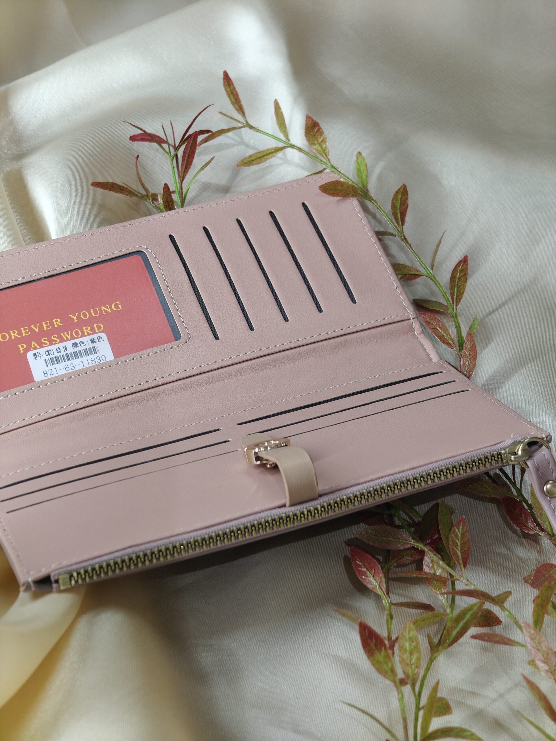 A mauve-hued mini wallet that blends charm with utility. Its Double-fold silhouette is adorned with delicate floral embroidery along the base, while a sleek wrist strap and metallic ring closure add modern polish. Lightweight and compact, it’s designed for graceful movement and effortless style.