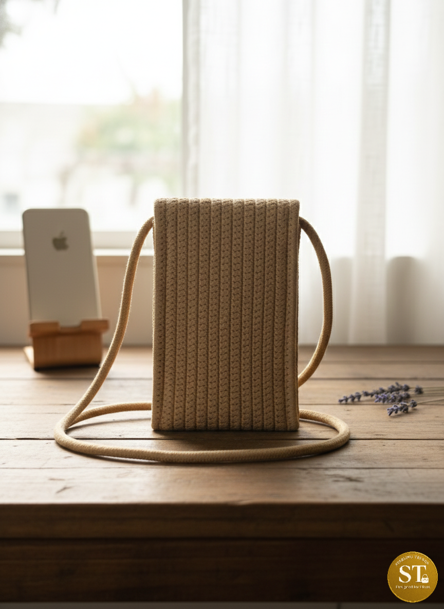 A handcrafted phone sling designed for everyday ease. Featuring detailed handwork on the front , this piece blends style with utility—perfect for hands-free outings, travel, or casual days.